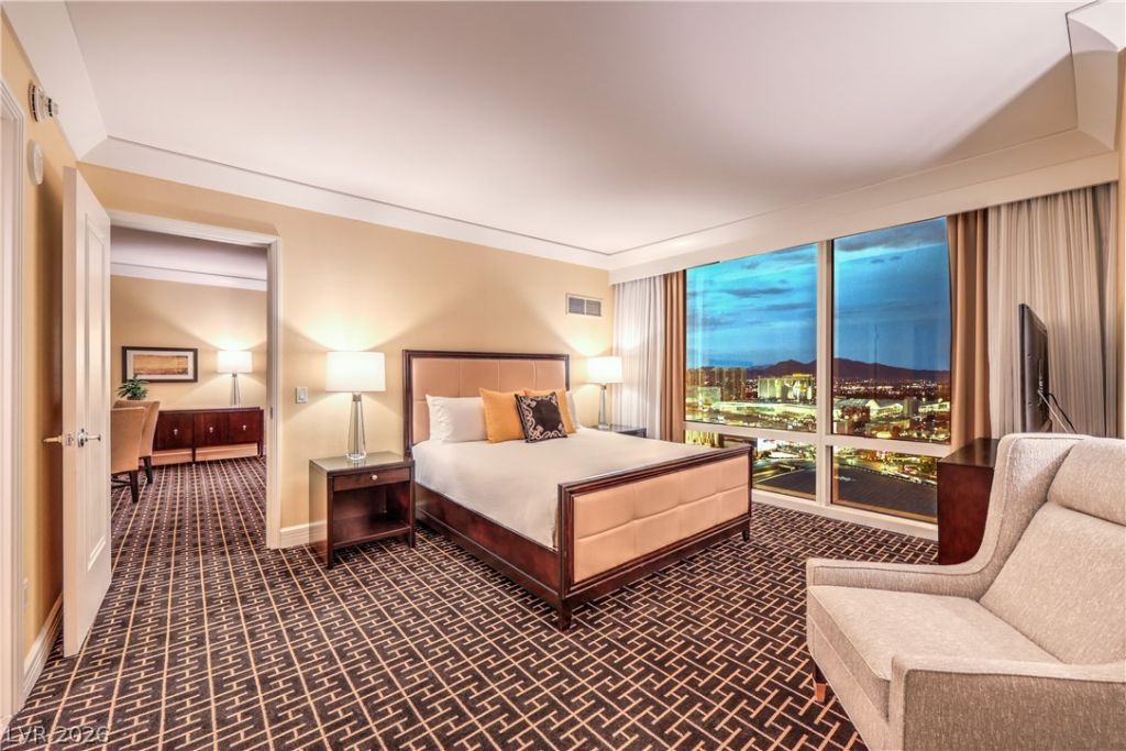 Elevate your Las Vegas lifestyle with this exquisite 1-bedroom, 2-bathroom corner residence located on the 38th floor of the iconic Trump International Hotel Las Vegas. This premium residence offers breathtaking multi-directional views through expansive floor-to-ceiling windows, capturing the glittering lights of Las Vegas and the Sphere. The open layout features a sleek & modern kitchen equipped with high-end appliances?perfect for effortless entertaining or everyday luxury. The spacious bedroom boasts a lush king-sized bed, while the primary bathroom includes dual vanities and a lavish soaking tub for ultimate relaxation. This corner residence delivers unmatched privacy, style, and iconic views in one of Las Vegas's most exclusive addresses. Don't miss the chance to own a luxurious piece of Las Vegas living.